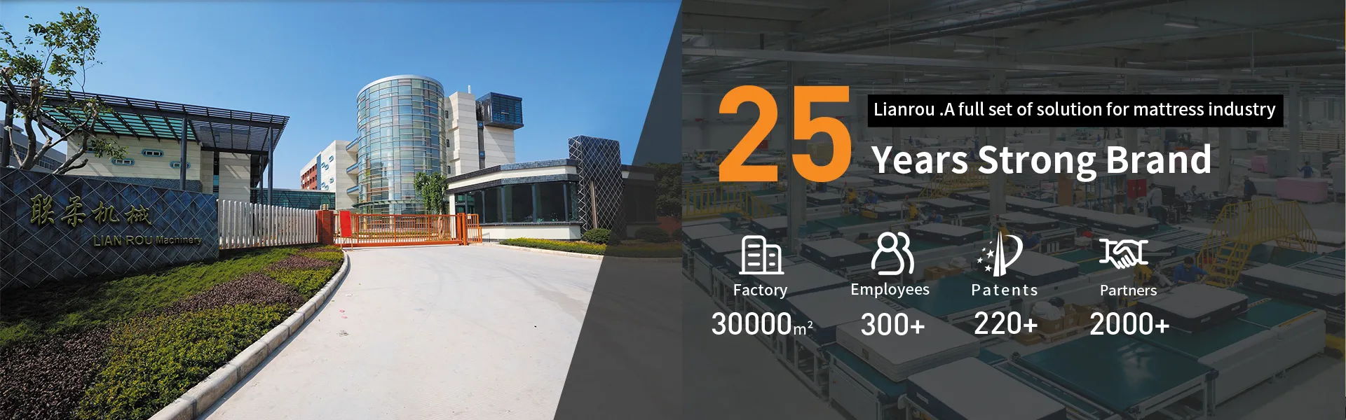 該款設備由廣州市聯柔機械設備有限公司生產,適用各類床墊的密封防水防塵包裝,更換產品尺寸規格不需要停機換料,是幫助床墊生產企業降本增效的利器。把原有6道工序整合成一條完整生產線:1投放乾燥劑、說明書;2自動包PE膜;3自動裁切,包發泡棉護角,投放腳手套;4自動裁切,抱紙護角;5自動包牛皮紙;6自動貼標籤。通過該生產線可以全自動完成床墊包裝,全流程35秒內可完成,極大提高了床墊包裝的整體工作效率,減少了耗材的浪費,極大的減少了人工成本和其他設備成本等生產成本。同時還減少了工人與床墊的接觸,提高了床墊的衛生程度。