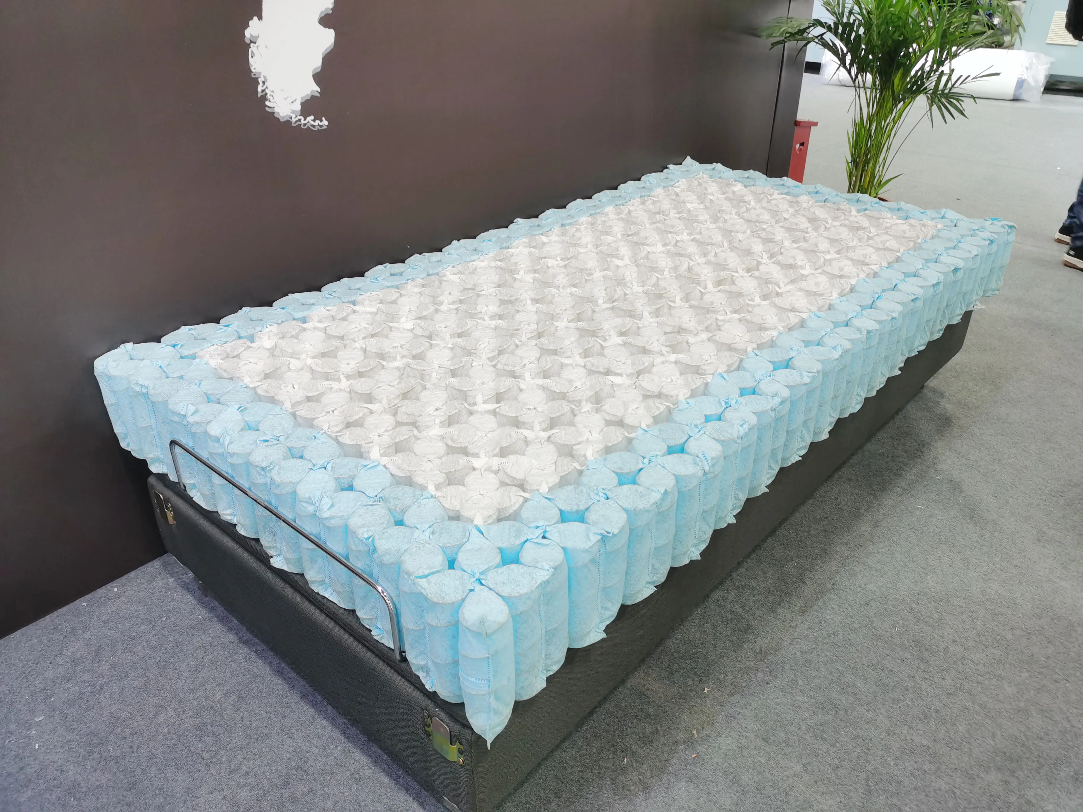有區別,舒適度較普通袋裝彈簧床芯有很大提高。一般採用雙線進給袋裝彈簧生產機生產,使用兩種不同規格鋼絲,在設備