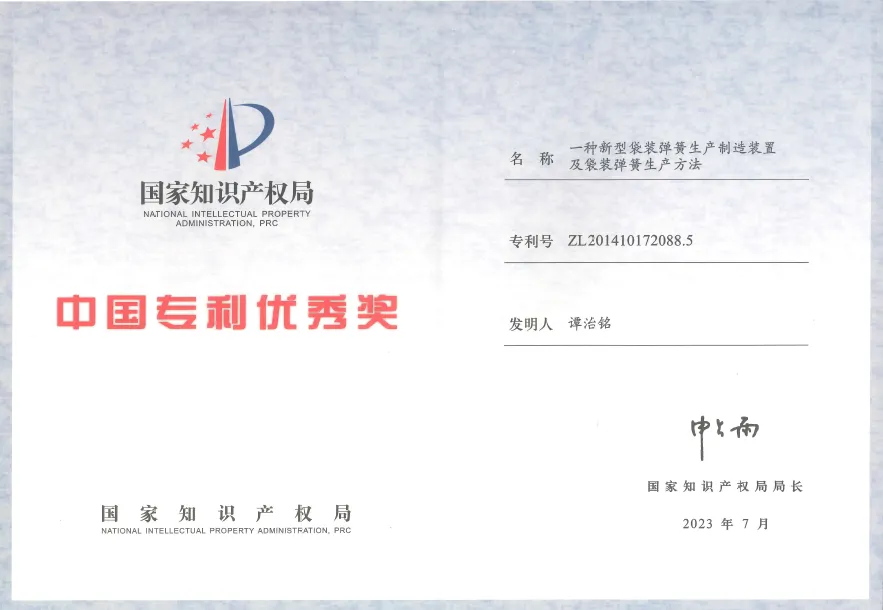 專利名稱:一種新型袋裝彈簧生產製造裝置及袋裝彈簧生產方法,專利號:ZL201410172088.5